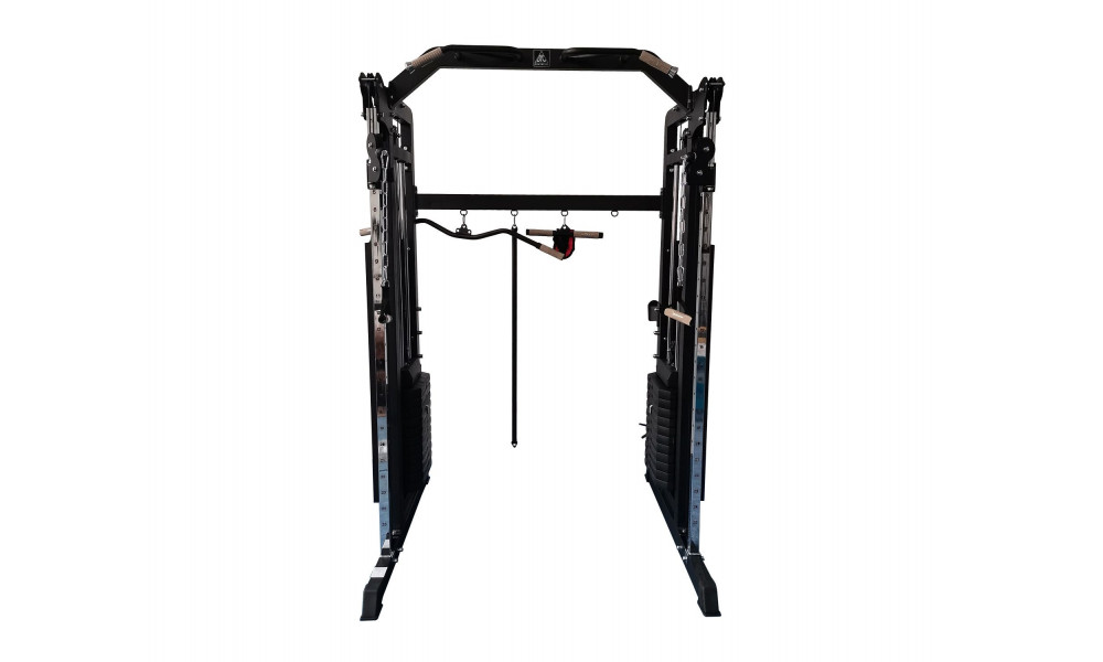 Силовой тренажер (кроссовер) со встроенными весами. Позволяет отлично прорабатывать мышцы верхней части тела благодаря множеству упражнений. Каждый блок с роликами регулируется по высоте тренажера. В комплект входит турник для подтягиваний, который позволяет выполнять упражнения широким хватом. Кроссовер изготовлен из высококачественного стального профиля размером 50 х 50 и 50 х 75 мм. Толщина 1,5 мм. В качестве нагрузки используются 2 встроенных стека общим весом 163 кг: по 81,5 кг каждый. Большой выбор различных грифов и ручек для занятий на тренажере.